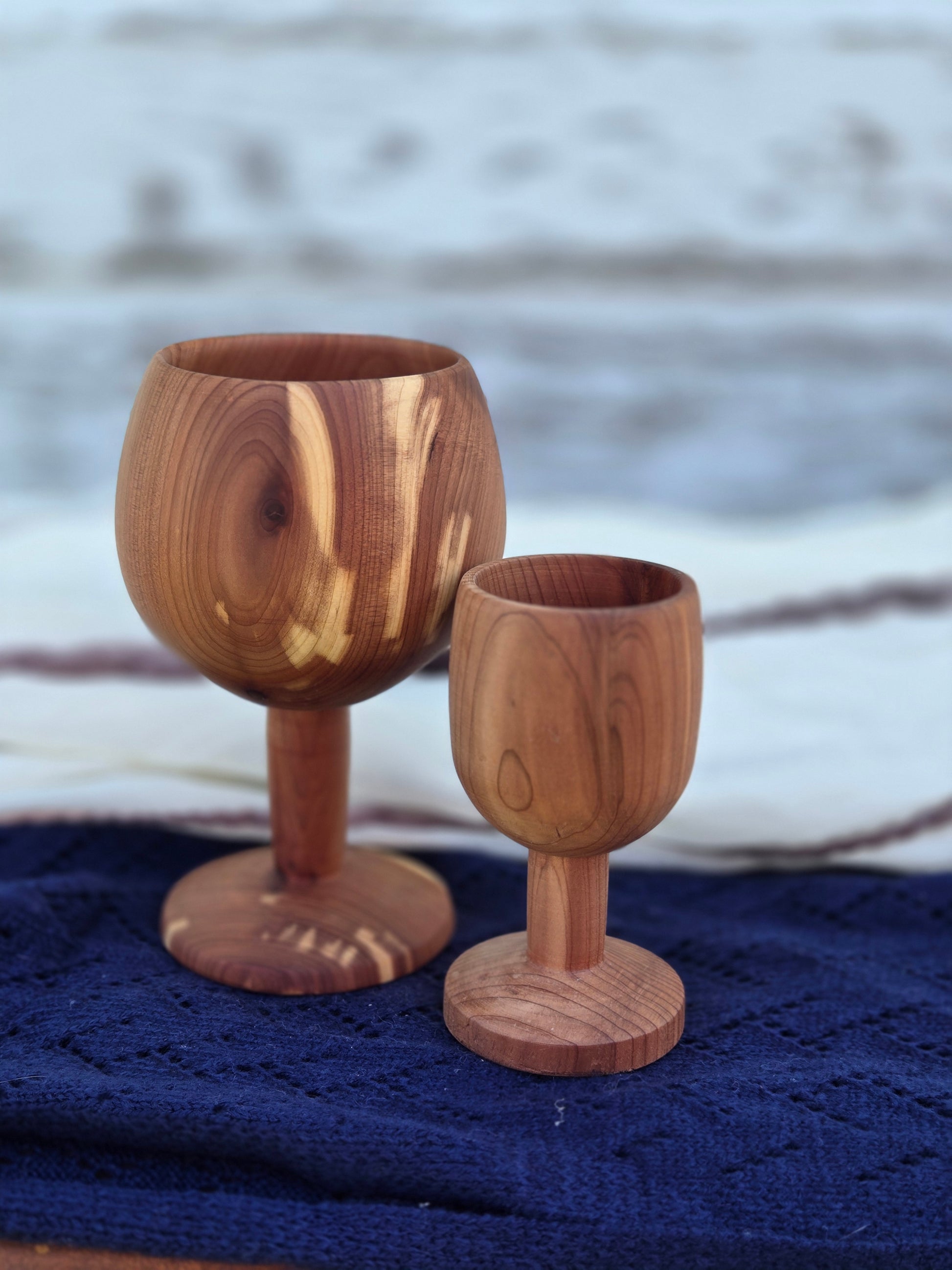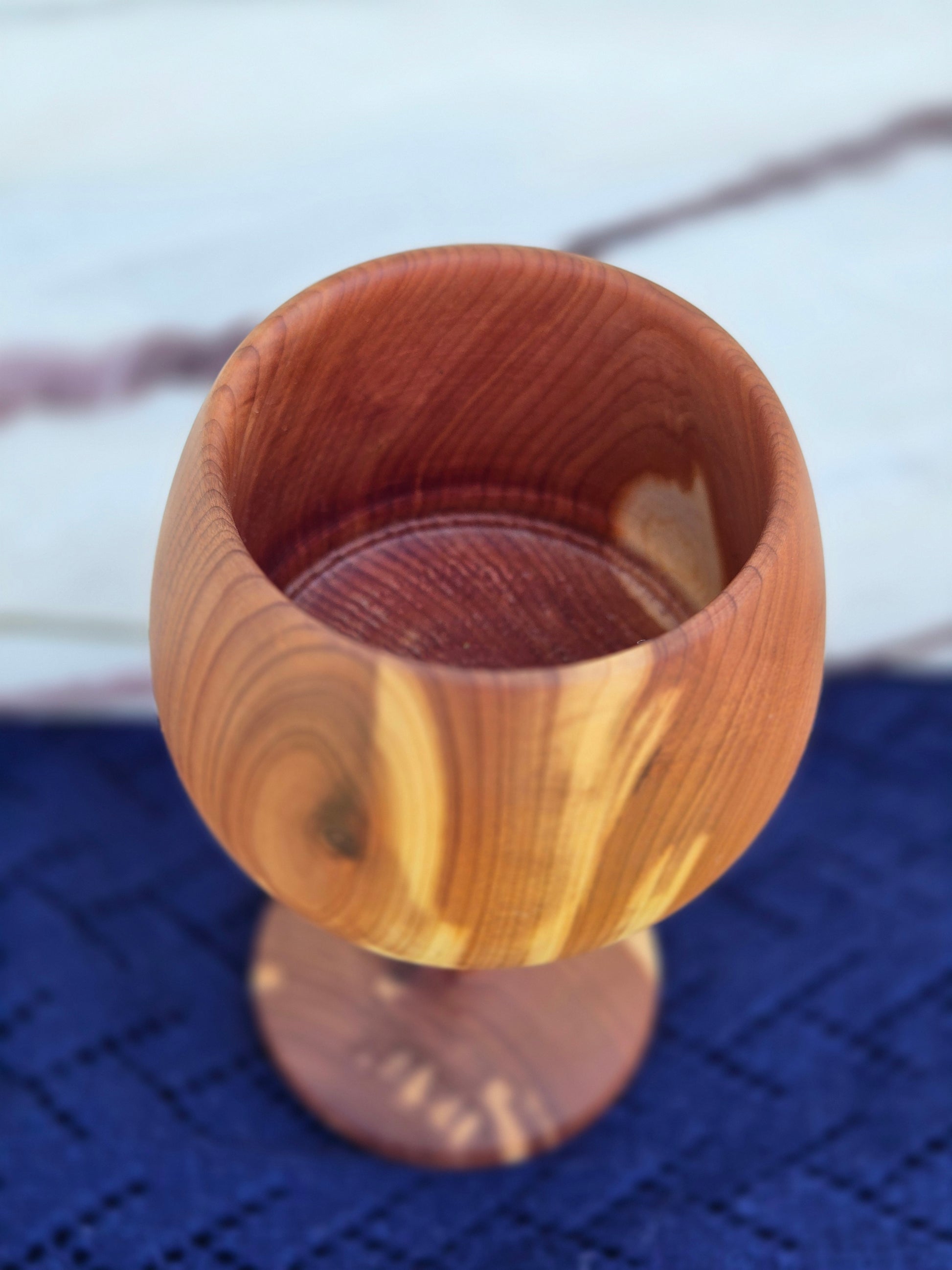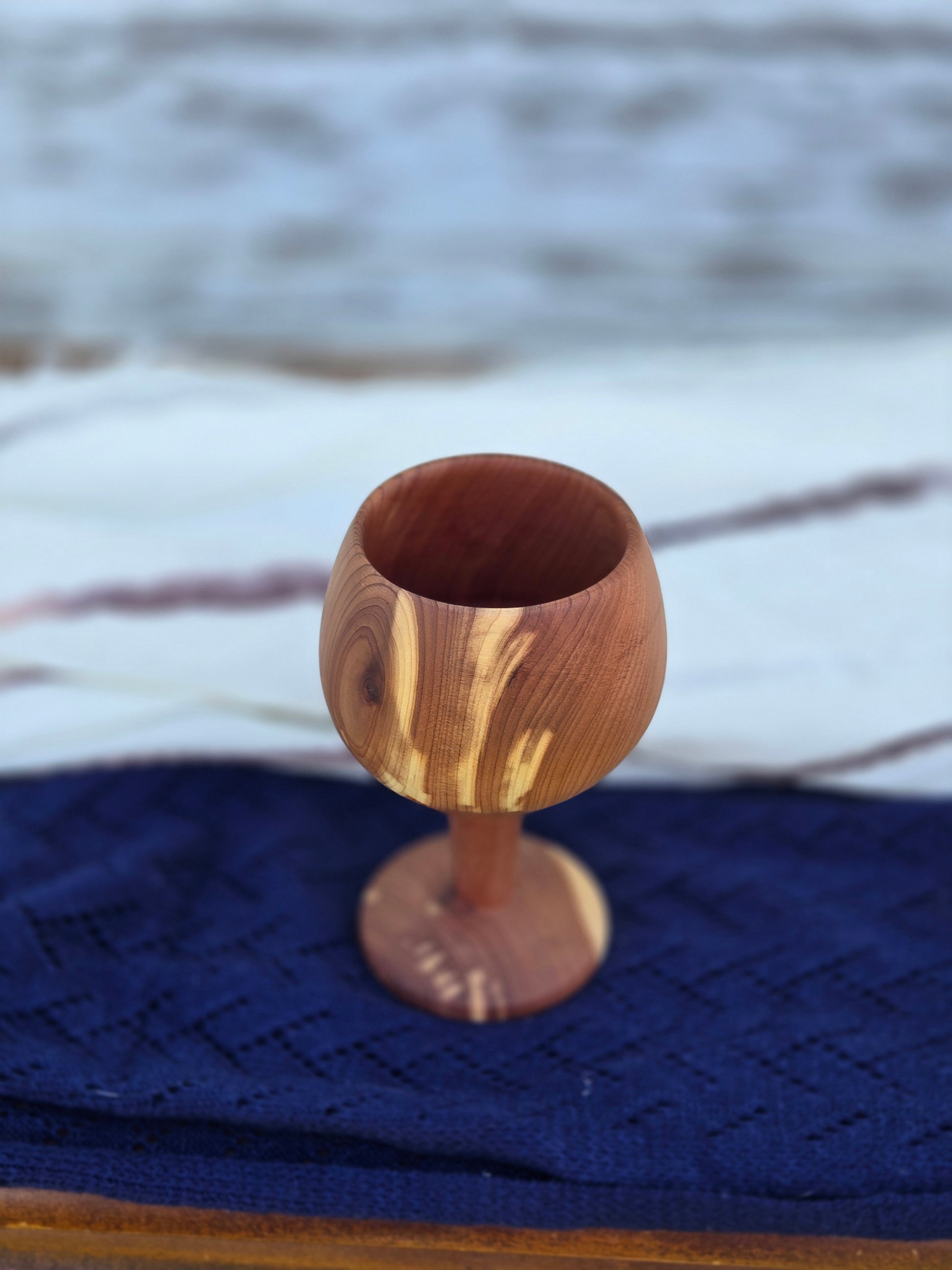 Enjoy a touch of rustic elegance with this large wooden wine glass, handcrafted by Papa Paul. Made from locally sourced cedar, the natural grain and warm tones create a striking, one-of-a-kind design that feels both earthy and refined.