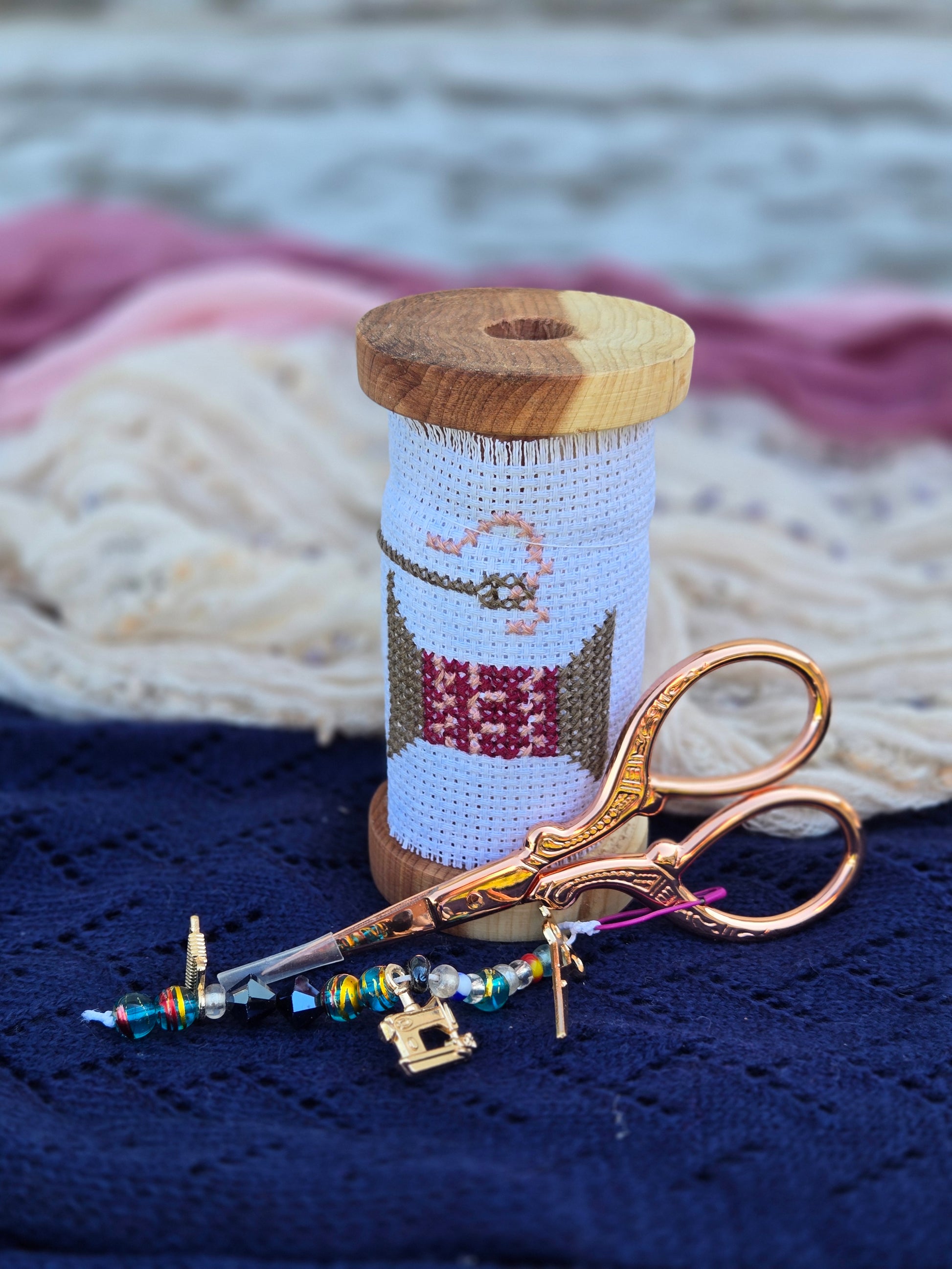 Medium Wooden Scissor Stand – “Spool of Thread” Cross-Stitch Design