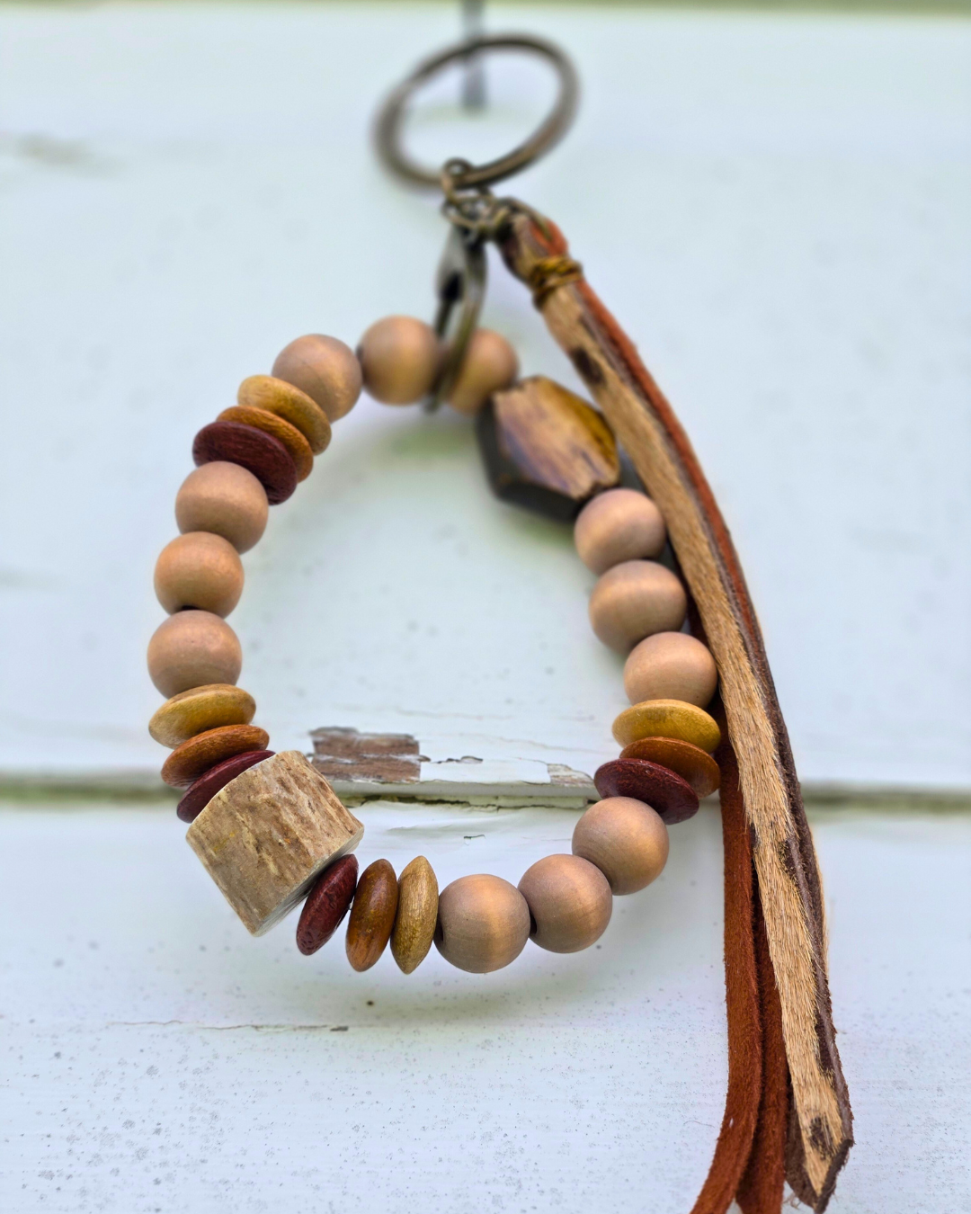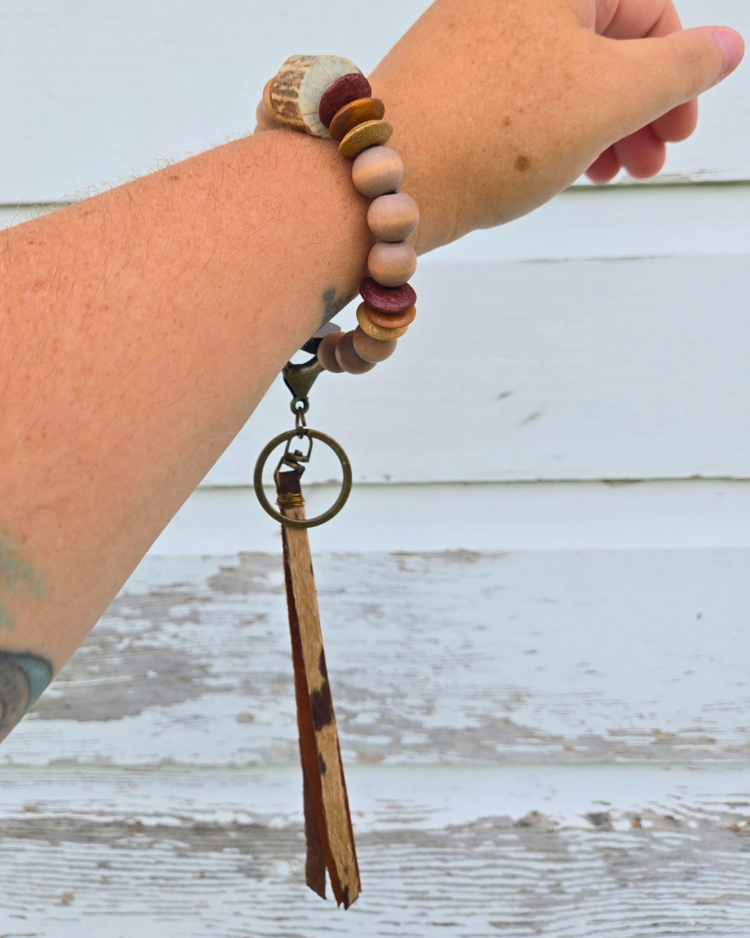 Rustic Charm Wristlet – Wood, Bone, and Leather