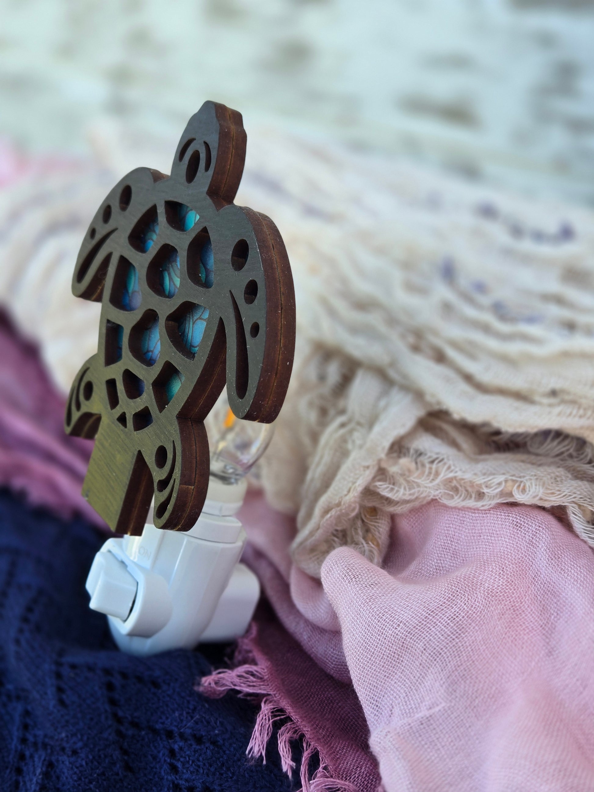 When illuminated, it casts a soft, ocean-like glow that’s both relaxing and enchanting β€” perfect for a bedroom, bathroom, or coastal-inspired space. Each piece is lovingly handmade, making it a one-of-a-kind accent that turns a simple night light into an artful keepsake.